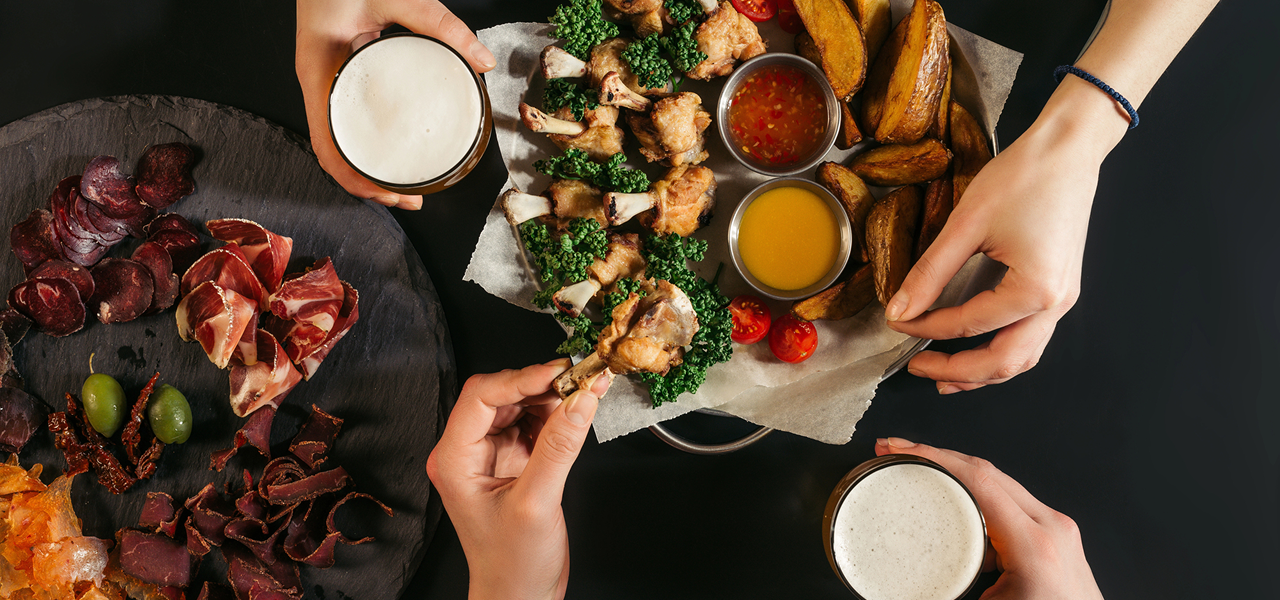 Pollo a l’ast, ración de 8 croquetas, ración de patatas bravas. Dos raciones de postre o ensalada, elegibles a precio super reducido. Alioli y salsa brava.